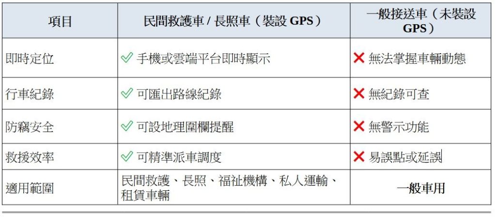 三、從公部門到民間:長照與民間救護車也需 GPS 守護